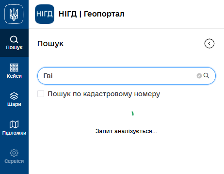 Ввівши кадастровий номер і натиснувши Enter або кнопку пошуку праворуч в рядку після опрацювання запиту ви побачите
