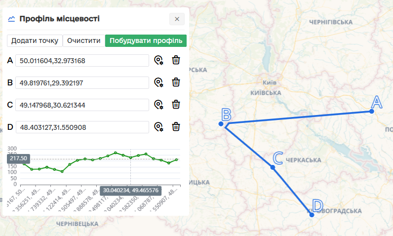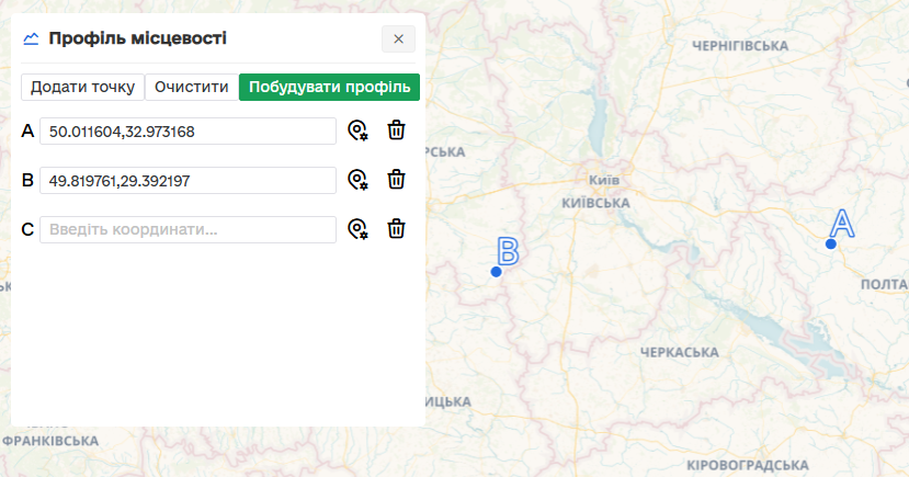 Інструмент для побудови профілю місцевості між необхідними точками на карті.