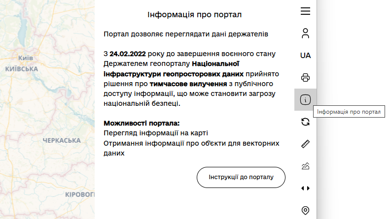 Забезпечує швидкий перехід до головного меню геопорталу з можливостями легкого переходу в інші розділи геопорталу